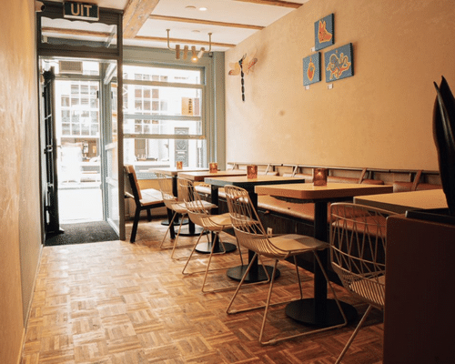 Stallinga en De Jong : “Colíma is een tacqueria en meer, een cocktailbar en mezcalleria. Staalman runt de vloer, en chef Miwell Martin Gomez (Pikoteo) tovert creatieve gerechten op tafel met ‘een Mexicaanse ziel, en mediterrane ingrediënten’, zoals taco’s met pistache-mole en lam.