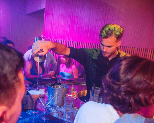 PALACE heeft verschillende etages die samen één ruimte vormen. Hierdoor ontstaat er een arena, waarin de dansvloer het middelpunt is. Warme en donkerpaarse kleuren voeren de boventoon in de club, waardoor een intieme sfeer ontstaat. Het is een plek waar publiek samenkomt om te socializen en te dansen op hun favoriete tunes.