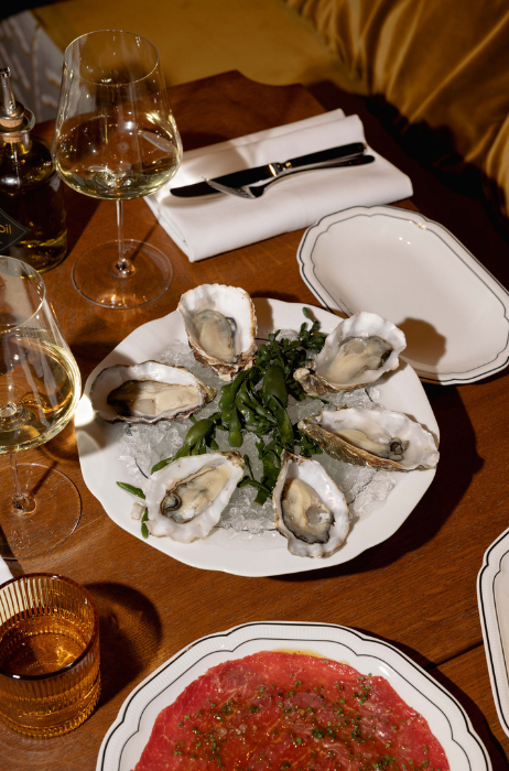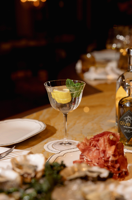 Binnen ligt een marmeren vloer en is er veel gebruikgemaakt van spiegels. Hiermee wilden de eigenaren een speels spel van licht en reflectie creëren. De lage bar geeft het geheel een huiselijke sfeer. Mede-eigenaar Yoeri de Jong: “We willen dat iedereen zich hier thuis voelt, of je nu met een zakelijke relatie aan tafel schuift of met vrienden.”