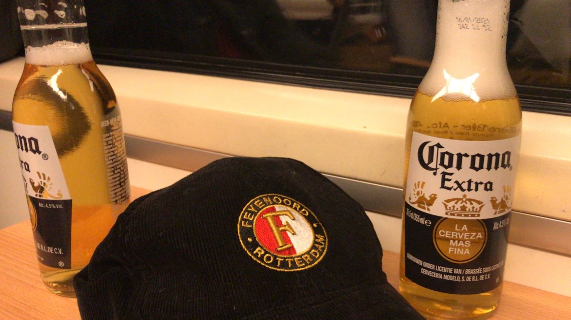 Een dikke drie weken geleden zat ik nog in de trein naar De Kuip om samen met nog dik veertigduizend man te kijken naar de halve bekerfinale tussen Feyenoord en NAC. Voor de lol had ik bij de Spar voor mijn broer en mij twee flesjes Corona gekocht. In mijn nek hijgde een andere reiziger met meer haast dan ik. [Terwijl ik dit tik merk ik dat ik al Coronabier wil schrijven in plaats van Corona. Tot drie weken geleden had ik het woorddeel ‘-bier’ niet eens nodig om het Mexicaanse bier te duiden. Dat is nu wel anders.] In de trein was het nog leuk die Corona, maar die flesjes bier voelen nu als een slechte grap. Ondanks het hondenweer was de wedstrijd geweldig (vanuit mijn perspectief dan). Als haringen opeengepakt in een ton gingen we in de trein terug naar de stad om nog een mooi glas bier te drinken. Het is dat de KNVB de supportersstromen al veel langer en om een andere reden uit elkaar haalt. Maar moet je eens voorstellen alle Bredase en Rotterdamse supporters door elkaar gezeten hadden ….