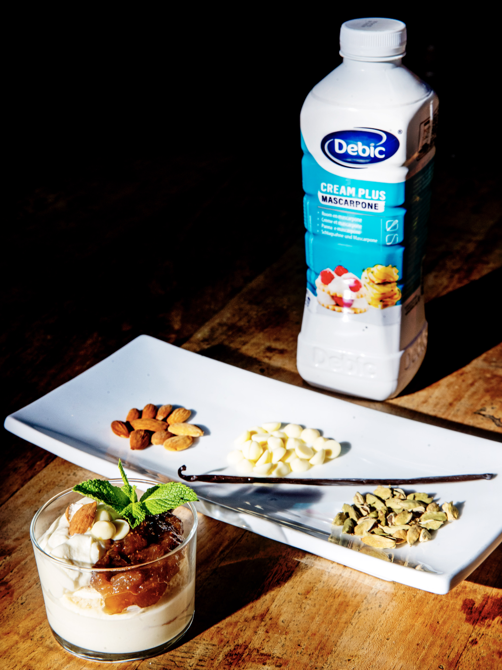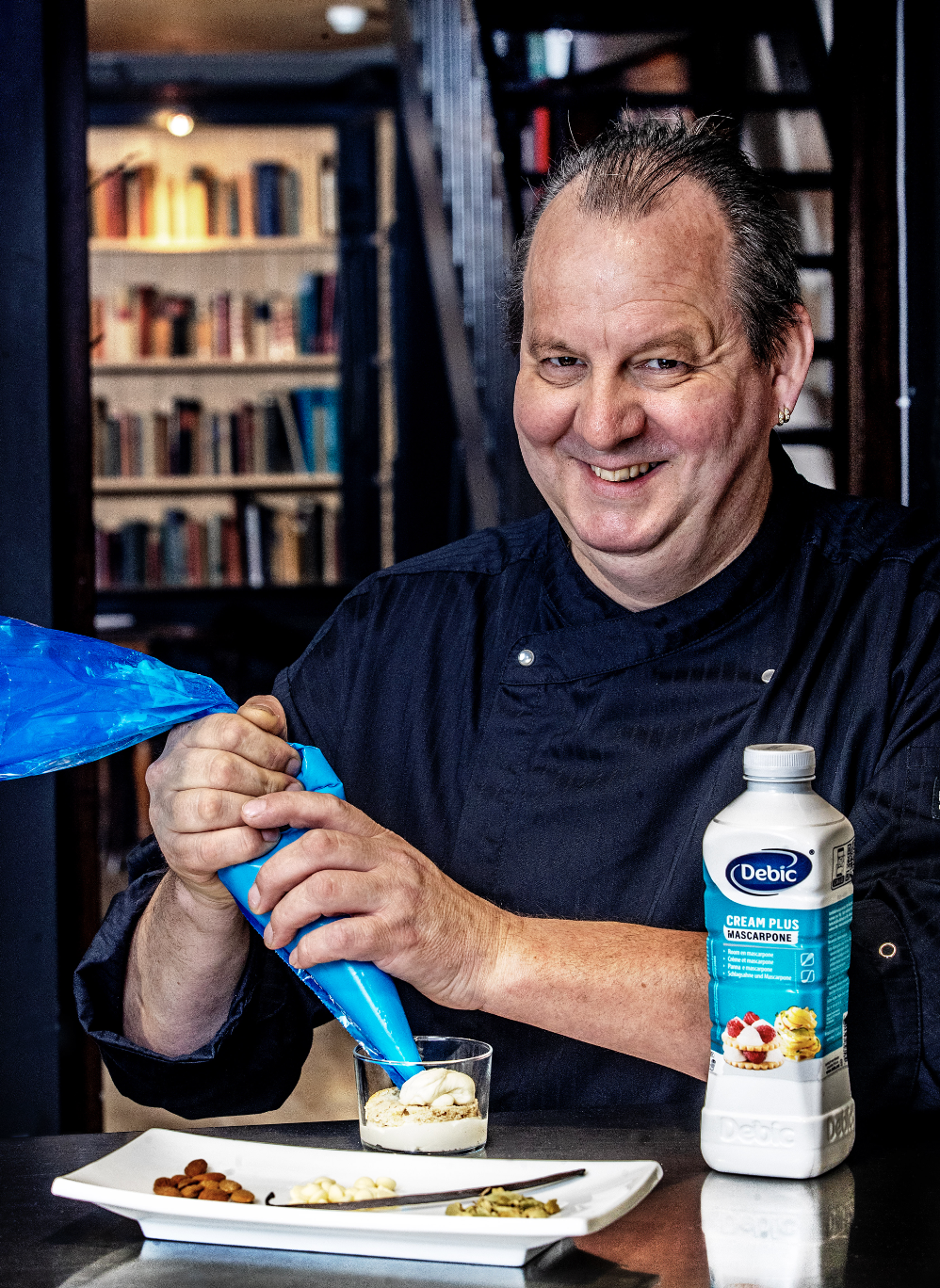 *Chef-kok Jan van der Kooi (links) Cream Plus Mascarpone van Debic (rechts)