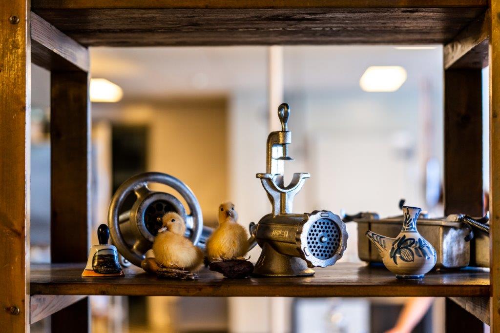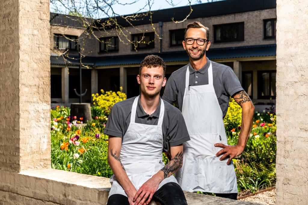 Dat gaan we dan maar doen. Prince begeleidt ons naar de keuken in de kelder. Dit is de plek waar de reis door de priorij voor alle gasten stipt om 18.30 uur begint. “Veel plezier, en laat jullie verrassen”, eindigt Prince. De opgewekte gastheer van vanavond, Jay Theulen, verwelkomt iedereen persoonlijk met een stevige hand en maakt een smaakvol aperitief met espumante (mousserende wijn), magnolia (geplukt uit de boom op het landgoed) en Willem’s Wermoed (Nederlandse vermout). Eerlijk is eerlijk, het voelt nú al bijzonder. Alsof we bij een goede vriend thuis gaan eten, maar waar we nog niet iedereen kennen. In grote open kasten prijken kleurrijke weckpotten met onder andere gefermenteerde daslookkappertjes en azijn van magnolia, geplukt op het eigen landgoed. En de chefs lopen ondertussen rond met grote schalen met amuses, alles voorzien van een Nederlandse touch: een rolletje van savooikool met Nederlandse ricotta, parelgort en karwijzaad. En: Een hostie (een broodhapje dat het lichaam van Jezus symboliseert) met aubergine, appelstroop, overjarige Texelse schapenkaas en boekweit. Chefs Roy Wiggers en Niels van Zijl zetten met deze start meteen de culinaire toon voor de avond: ze werken zo veel mogelijk met Nederlandse en (hyper)lokale producten.