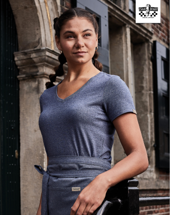 De Recycled Chefwear collectie bestaat uit hoogwaardig gerecyclede materialen. De nieuwe kledinglijn ontstaat door ingeleverd horeca textiel te vervezelen en te combineren met andere gerecyclede vezels. 15% van de uiteindelijke stof bestaat uit gerecycled horeca textiel. 52% bestaat uit gerecycled PET-polyester en 33% uit gerecycled katoen. Een veelzijdige en circulaire collectie bestaande uit onder andere een witte koksbuis, schorten, sloven en t-shirts in een blauw/grijze kleur met de naam blue melêe. Met deze unieke kleur creëer je een stijlvolle look die perfect samengaat met andere items uit de collectie van CHAUD DEVANT.