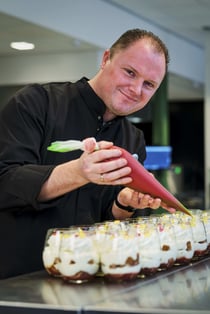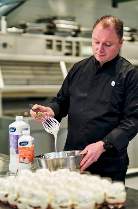 Grote evenementen betekenen grote volumes en voor de desserts gebruikt Terpstra daarom al jaren producten van Debic. “Het bespaart tijd en de kwaliteit is altijd stabiel. Hierdoor zijn desserts op iedere locatie hetzelfde en kan iedereen in de keuken het maken”, zegt de executive chef.