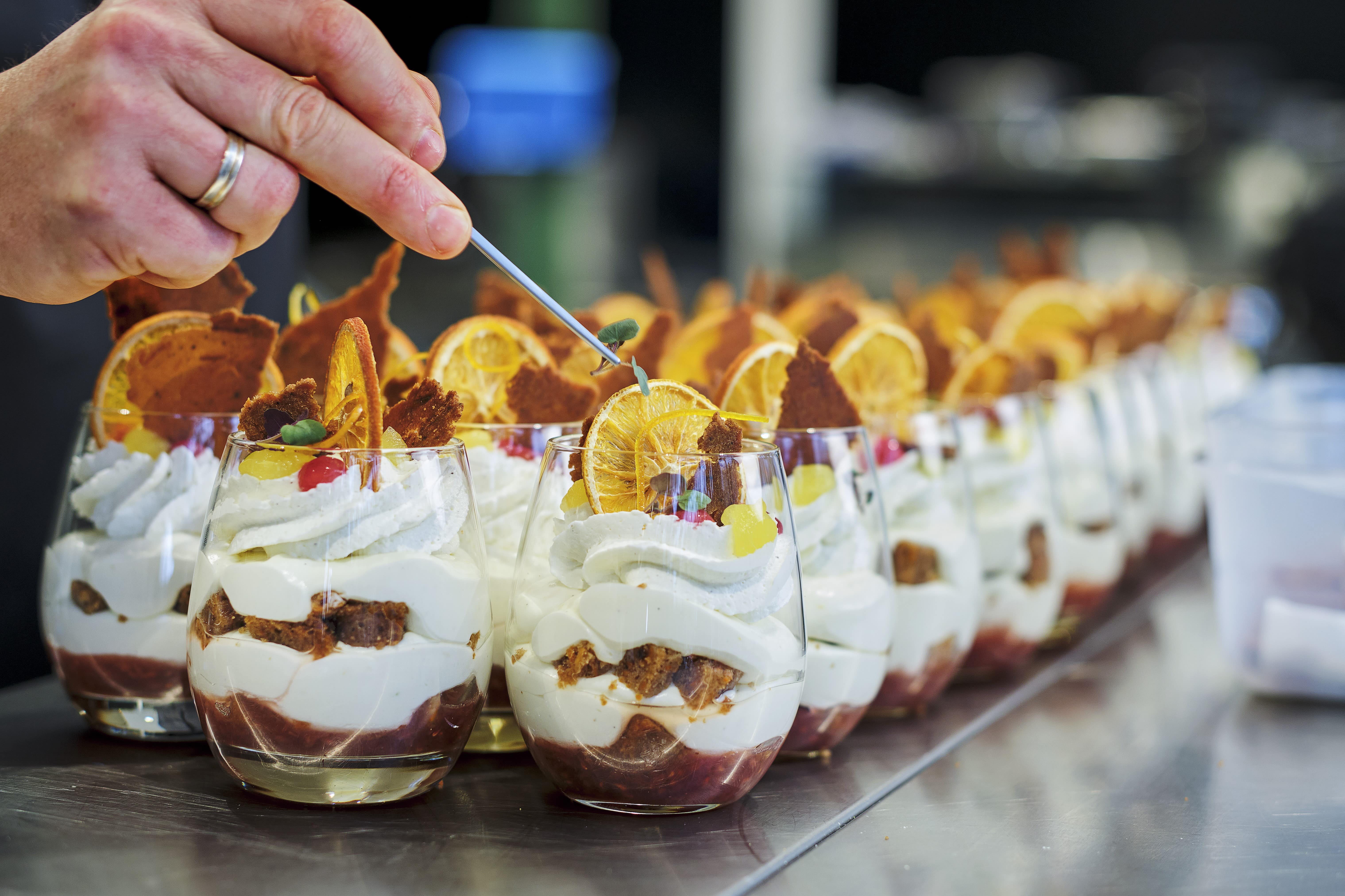 Ze maken momenteel honderden desserts per dag, afhankelijk van de hoeveelheid evenementen en variërend van een klein dessert bij een shared diner, tot een groot dessert bij het buffet of sitting dinners. “Het is een substantiële winst die we boeken met de producten van Debic. Als ik het helemaal doorbereken, scheelt het aan kostprijs zo’n 40%, de kosten van personeel en grondstoffen mee berekend.”