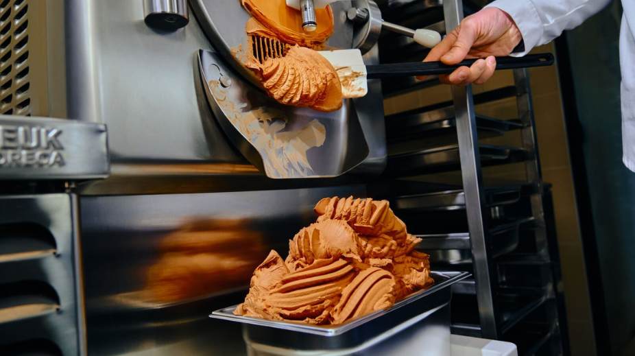 Voor ambachtelijk schepijs: Vervang de dierlijke melk en room voor de vloeibare ijsmix als basis en kies daarbij zoals je gewend bent voor een siroop of pasta. Creëer klassieke smaken zoals chocolade, vanille en stracciatella, tot de meer exotische smaken. Reken met 25% volumeopslag.