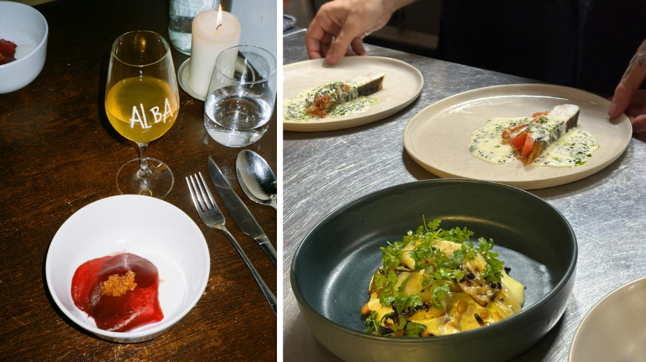 Restaurant Alba, aan de Amsterdamse Wibautstraat, opende in 2020 de deuren. “Zes weken voor de lockdown”, vertelt mede-eigenaar Steven Macleod, die eerder werkte bij Bar Centraal en Café Modern in Amsterdam. “Ik wilde een toegankelijke plek creëren met easy fine dining met veel groenten en een uitgebreide wijnkaart, een goede vibe en professionele service.” Hij vervolgt: “Veel smaak en weinig poespas met een terras waar in de zomer ook lekkere bites geserveerd worden. Alba is een plek waar je jezelf kunt zijn.”