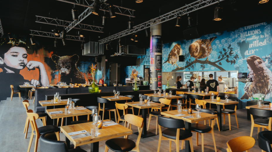 Het resultaat is een veelzijdig restaurant dat volgens de eigenaren niet makkelijk in een hokje te stoppen is. Zo is de grote open ruimte opgedeeld in verschillende delen. Elk deel heeft weer een andere sfeer. Hierdoor ervaren gasten de hele dag door andere settings in de zaak.