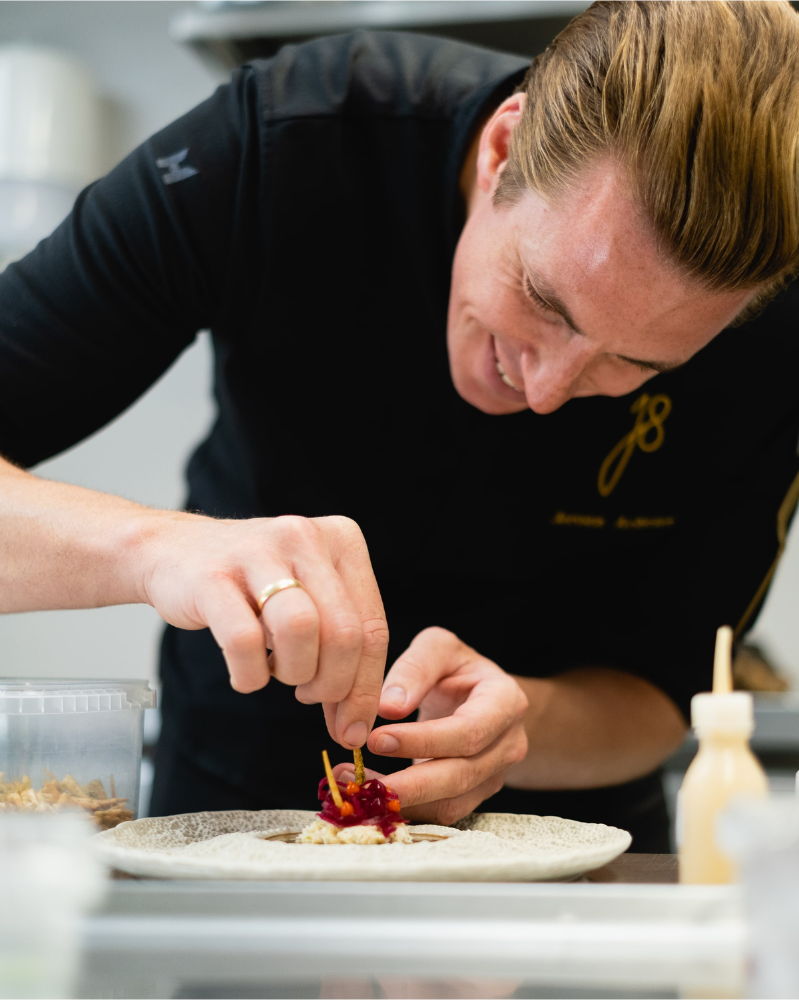 Tot eind december blijft Jannis Brevet betrokken als adviseur: zowel voor het hotel als voor Achtien. Hierdoor kan de nieuwe chef de leveranciers leren kennen en overnemen. “Hij introduceert mij en neemt me mee op sleeptouw door Zeeland”, legt Achtien uit. “Hij droomt Zeeland inmiddels en ik heb geen idee. Hierdoor hebben we een stabiele basis. Natuurlijk wordt de kookstijl anders, maar we gaan grotendeels koken met dezelfde basisingrediënten. In Zwitserland stapte ik blind in. Ik sprak geen Duits en moest met mijn handen en voeten aan leveranciers duidelijk maken wat ik wilde. Dat kostte veel tijd en energie.”