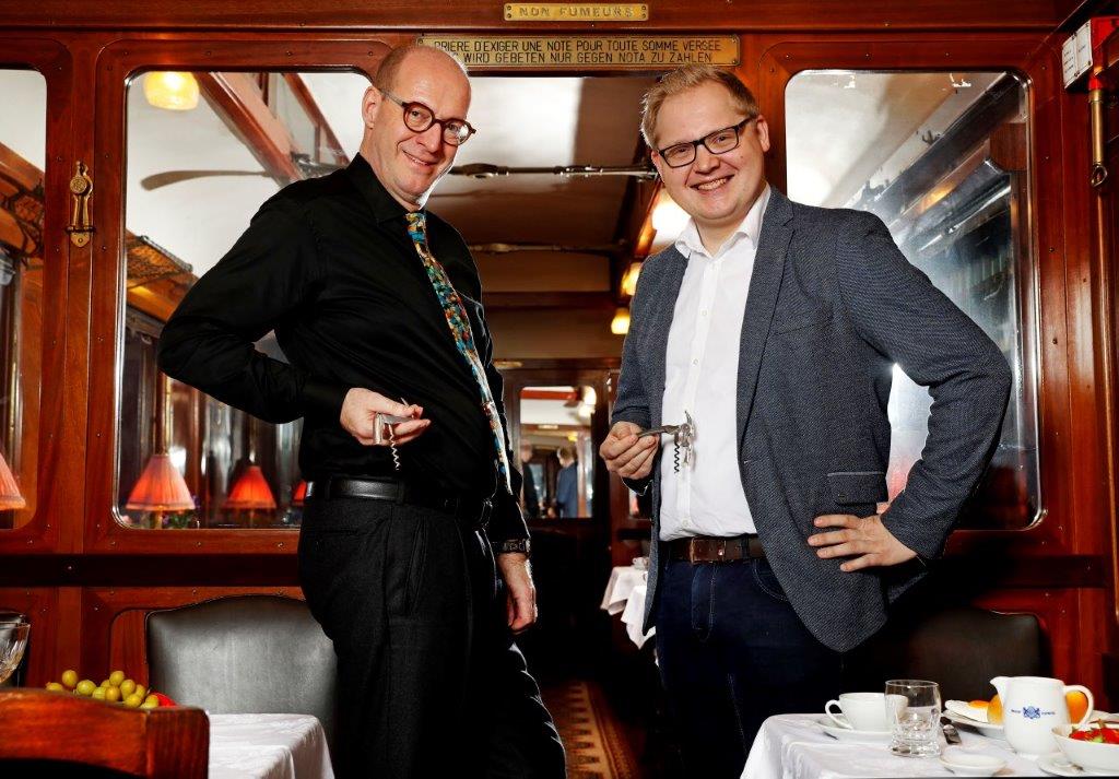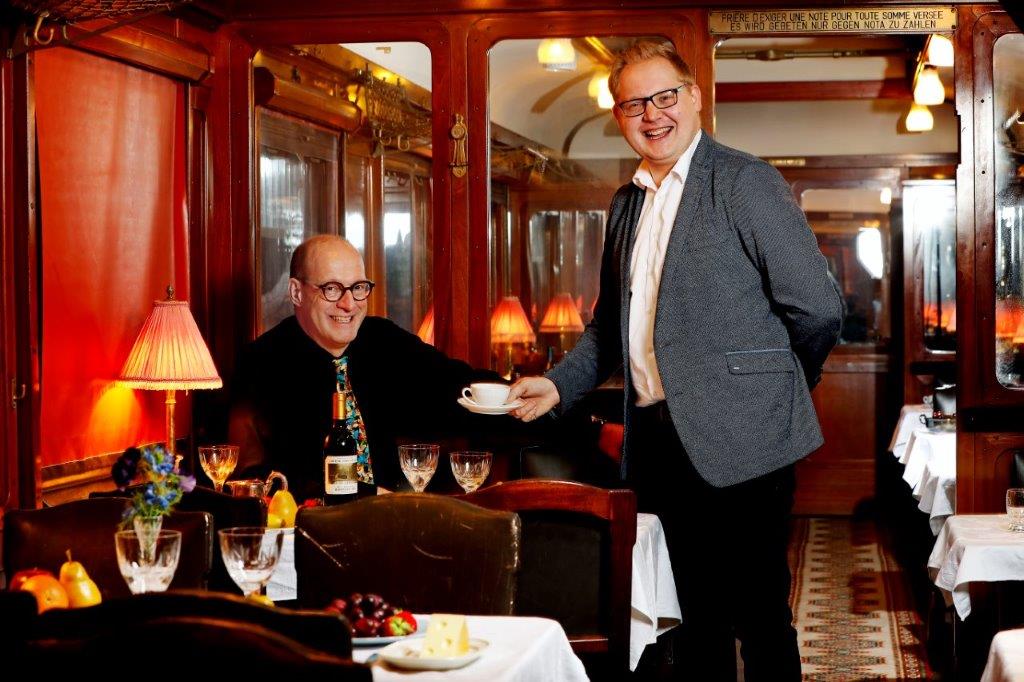 Petro Kools en Tim Wellenberg vertellen over gastheerschap. Entree sprak de heren in het Spoorwegmuseum in Utrecht. Bekijk onderin de prachtige foto's en de informatie over de bijzondere restauratierijtuig dat diende als decor.