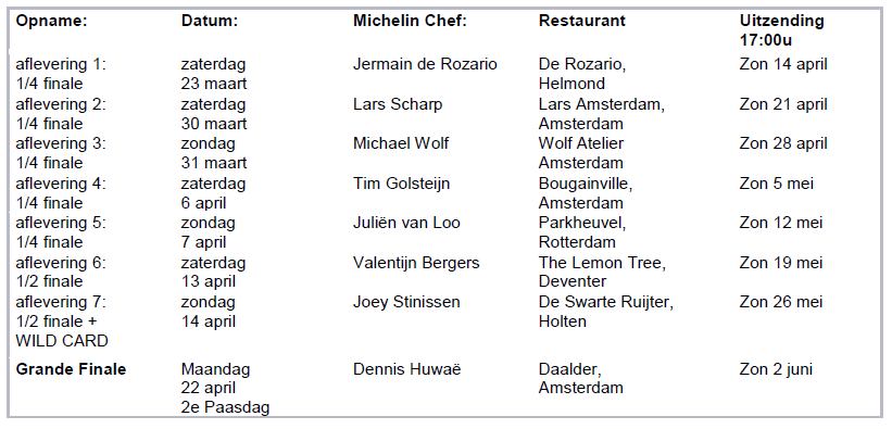 De jury bestaat uit één wisselende topchef per aflevering. In de bijlage is te zien wanneer welke Michelin Chef in de jury zit.