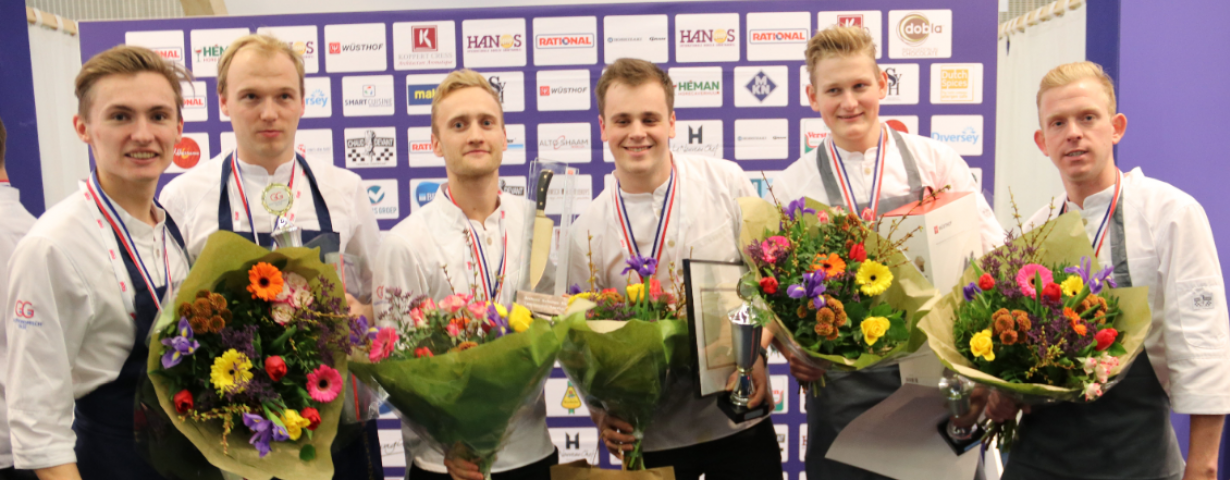 Het Nationaal Kampioenschap Leermeester-Leerling is gewonnen door Jasper Panis en Koen van den Hurk van Bord’Eau*. Hun winst werd zojuist bekendgemaakt tijdens de Horecava. Tweede werden Rody Ponne en Mike Klaassen van Ciel Bleu**. De derde plaats is voor Michel Oude Booijink en Mart Oude Luttikhuis van De Bloemenbeek*.