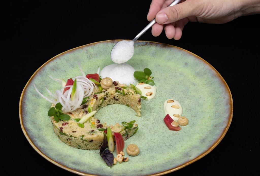 Het afgelopen jaar is geïnvesteerd in training van het bedienend personeel en is ook het niveau van de bediening meer in lijn gebracht met de ambities. Sibrecht Benning: “Aan de voorkant staan we sterk met maître-sommelier en fromager Charissa Hendrikx, die gewerkt heeft bij onder meer de Librije en de Kromme Dissel. Zij speelt een belangrijke rol bij de wijnselectie, want door de specerijen die ik gebruik luistert de wijnkeuze nauw. Assistent-maître Sander van Haeren is afkomstig van Villa Ruimzicht en gastheer en bartender Edwin Eggenhuizen is al jaren een vaste waarde in De Sjalot.”