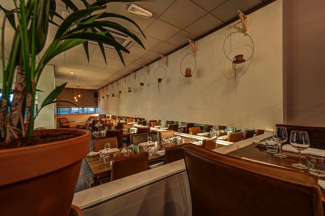 In de inrichting van Kale & de Bril zijn natuurlijke, warme materialen als hout en leer gebruikt. Niek Traas: “We willen dat de gast zich bij ons thuisvoelt. De houten vloer, de comfortabele leren stoelen en de houten tafelbladen geven een gevoel van warmte, dat wordt versterkt door de bijzondere plantdecoraties. In de zithoek kan genoten worden van een aperitief of een kopje koffie na afloop van het diner.”
