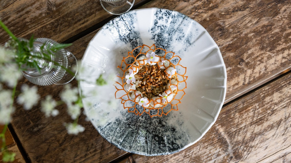 Zij was het die Drijfhout op deze koers bracht. Toen ze elkaar hadden leren kennen, stelde ze hem voortdurend kritische vragen over de ingrediënten die hij gebruikte. Kort samengevat: weet wat je eet. Zo kwamen ze tot een gezamenlijke visie, die ze nu met passie uitdragen op een plek die is omgeven door natuur en waar wildpluk helpt het menu te verrijken. Dat verhaal delen ze graag.