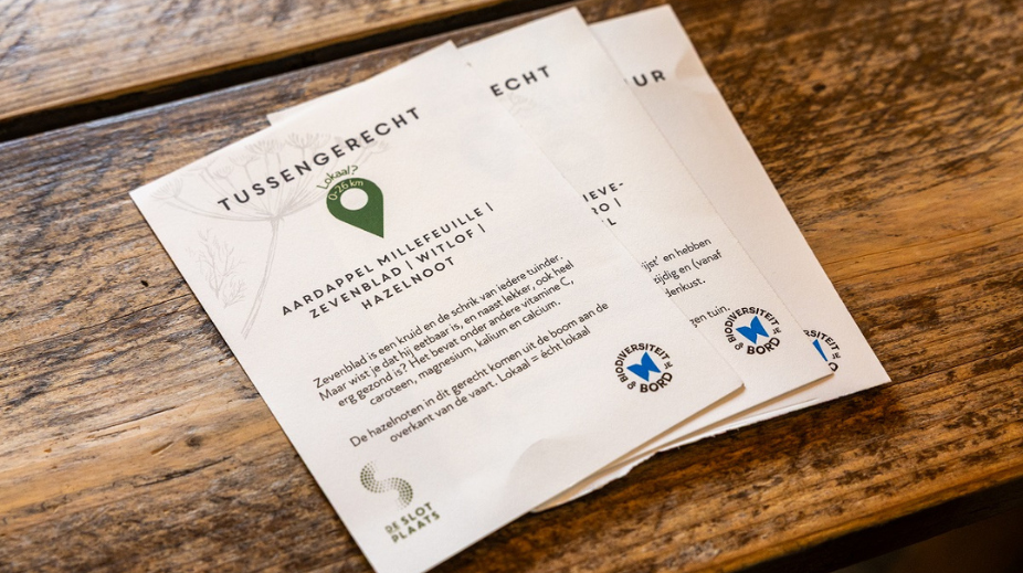 “Onze slogan is vanaf dag één: duurzaam, transparant en lokaal. We hebben alles inzichtelijk gemaakt op de menukaart: is het lokaal? Is het biologisch? Of allebei?” vertelt Rijnbeek. “En als iets niet biologisch is, dan zeggen we dat ook. We vertellen erbij waarom. Gasten mogen alles vragen.”