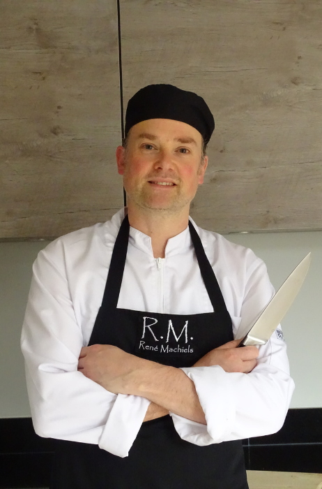 Acht jaar lang werkte René Machiels als chef-kok bij Hortustuin in Harderwijk, totdat er een nieuwe eigenaar kwam die andere plannen had met de zaak. Machiels gooide het roer om en zegde op. Niet omdat hij klaar was met de keuken, maar omdat hij het vak wilde uitoefenen op zijn eigen voorwaarden. Inmiddels werkt hij al tien jaar als freelancekok en wisselt zijn werkplek van villa’s en restaurants door heel Nederland tot zelfs het voetbalveld van Jong Oranje.