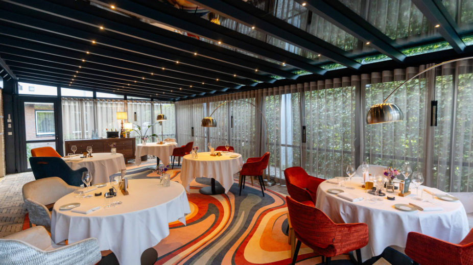 De nieuwe serre, de Tuinkamer, biedt een intieme setting waar het buitengevoel subtiel naar binnen wordt gehaald door de grote glazen ramen. Berentsen: “Hier laten we gasten graag genieten van gerechten die de smaken van het seizoen weerspiegelen, terwijl ze omringd zijn door het groen van de omgeving.”