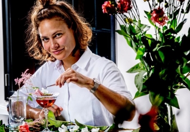 Na een periode van mannelijke winnaars, liet Sharai Rodrigues tijdens de Nederlands Kampioenschap Cocktails van de Nederlandse Bartenders Club in juni zien dat de dames niet onderdoen. Ze won en mocht Nederland vertegenwoordigen op het WK Bartending in Kopenhagen. Ook dat was een succes: ze eindigde op de derde plaats. Voor de internationale finale kreeg ze de Deense Geranium gin toegewezen, een vrij florale gin gebaseerd op geraniumolie. “Toen ik de gin voor het eerst rook, kreeg ik direct associaties met parfum en bloemen”, begint Rodrigues. “Dat inspireerde mij en dus heb ik er een variatie op de Aviation cocktail van gemaakt, met daarbij mijn eigen siroop van Catz Dry Gin, verse frambozen, suikersiroop, vlierbloesem en viooltjes.” Ook bedacht ze er, in samenwerking met een bevriende chef-kok, een foodpairing bij. “Normaal gesproken maak je tijdens de wedstrijd een garnering of decoratie bij je cocktail. Je ziet de mooiste snijwerken, maar niemand durft daar eigenlijk vanaf te stappen. Ik wilde iets unieks.”