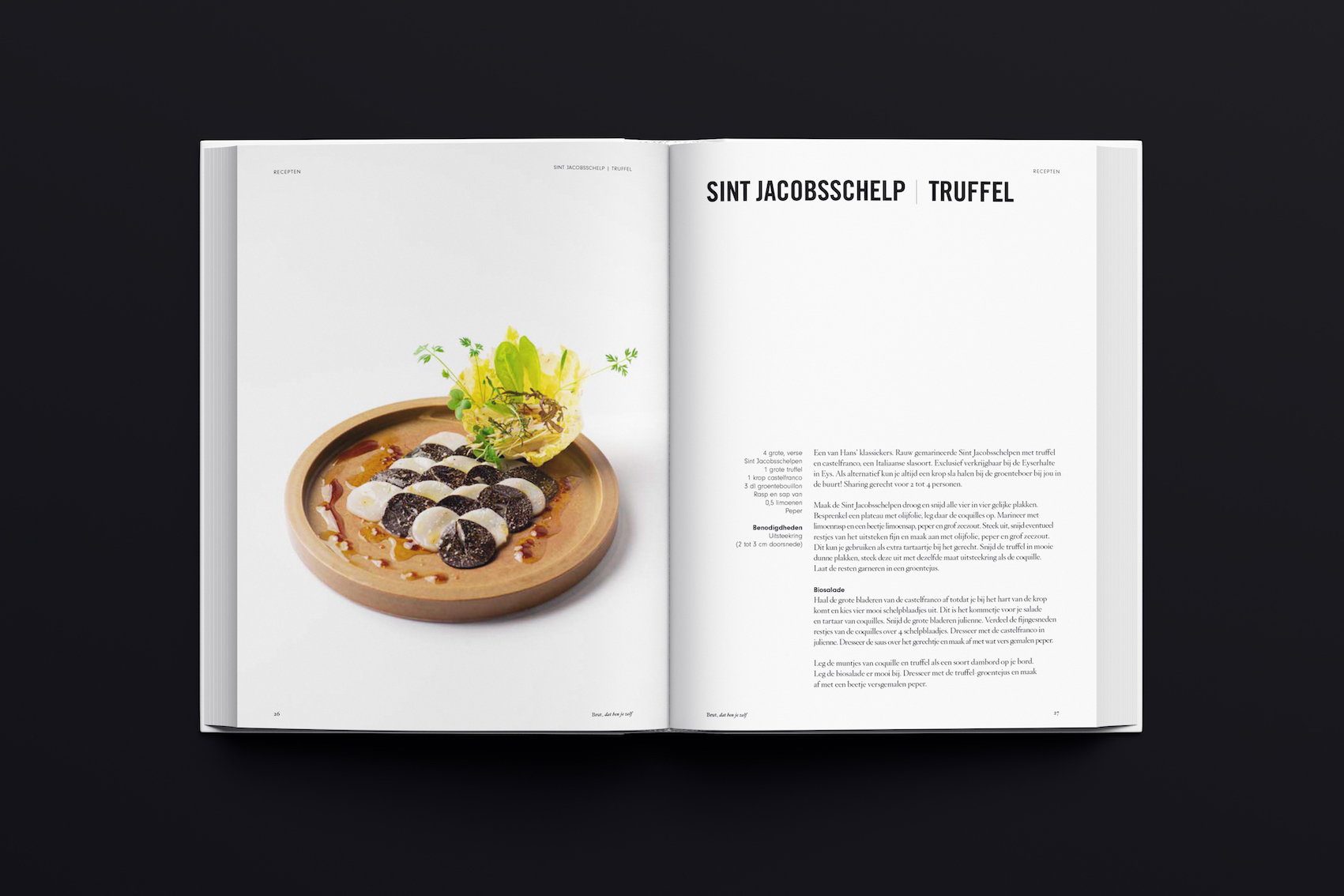 Die verhalen worden aangevuld met recepten uit de keuken van Van Wolde en Brut172. Recepten uit het verleden en van het heden. Recepten om thuis zelf te maken, herkenbaar voor de liefhebber en de hobbykok, want, Brut, dat ben je zelf.