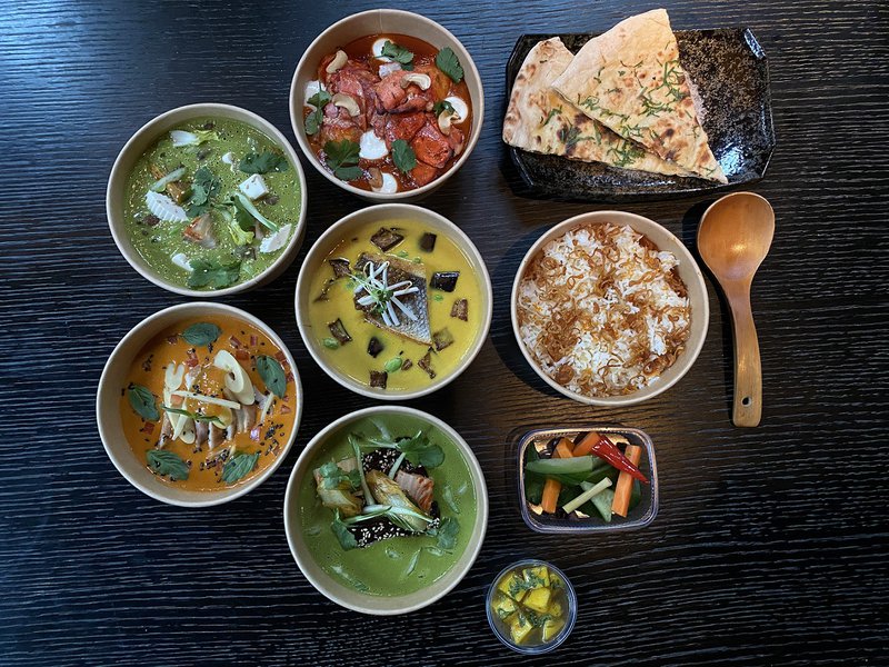 Op het menu staan vier Thais geïnspireerde curry’s en één Indiase curry. Het menu bevat onder andere een groene curry met Wagyu, een gele curry met zeebaars en zelfs een Makhani curry met St. Mary’s Bay kreeft. Alle curry’s worden geserveerd met risottini, naan of krokante pappadum, tafelzuur en mango chutney. Om dit feestmaal af te sluiten staat er ook nog een kokos tapioca pudding als dessert op het menu.