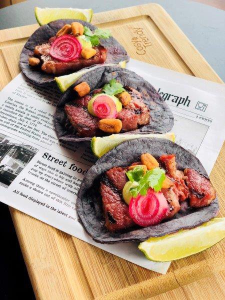 Volgens Paul Stoop, executive chef bij DoubleTree by Hilton Amsterdam Centraal Station, komt de populariteit ook doordat er niets zo zomers is als taco’s op een zonovergoten terras. Stoop serveert ze graag op het rooftop-terras van het hotel. “Als chef is het een fantastisch product om mee te werken op een terras”, zegt hij. “Je kunt er goed massa mee draaien als je mise-en-place op orde is en je kunt er alle kanten mee op: klassiek met ceviche of Mexicaans stoofvlees, maar het leent zich ook goed voor fusionbereidingen. Vorig jaar serveerden we bijvoorbeeld een taco met Indonesische rendang. Ik vind het heel inspirerend om met tortilla’s te werken. Ze lenen zich ook voor koken met de seizoenen en voor een signature dish.”