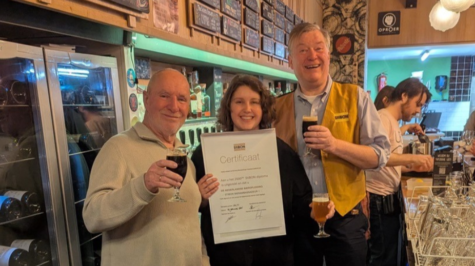 StiBON heeft op 10 februari in Utrecht het 2.500e diploma bierambassadeur niveau 1 uitgereikt aan Sascha Goudkade. Een bijzondere mijlpaal voor de Nederlandse bieropleider. De diploma-uitreiking vond plaats bij Taplokaal GIST, waar Sascha werkzaam is. “Bier is voor ons een serieuze drank”, aldus Jasper Borgdorff, mede-eigenaar van Taplokaal GIST en zelf biersommelier. “Daarom investeren we graag in bierkennis van onze medewerkers. Bij GIST willen we onze gasten graag bieren schenken op basis van smaak, niet zozeer op basis van merk. Daarvoor is goed bieradvies onmisbaar.”