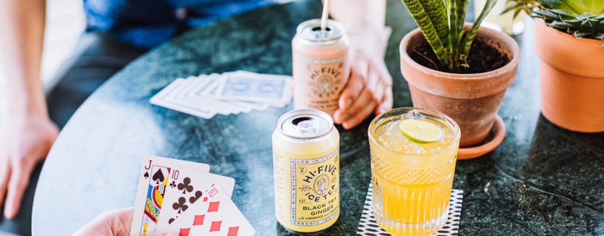 Hi-Five Ice Tea wordt verpakt in blik, omdat dit de aroma’s en smaken beter beschermt tegen de negatieve invloeden van licht en zuurstof dan een glazen verpakking. Hoewel Hi-Five Ice Tea prima op zich gedronken kan worden, leent het zich ook perfect als basis voor hard ice tea mixrecepten. Schenk Hi-Five uit over ijsblokjes, garneer met stukjes fruit en voeg een shot alcoholhoudende drank toe.