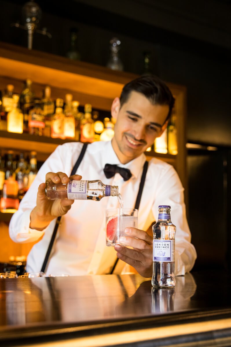 De tonics en soda’s van London Essence zijn voor hem welkome aanvullingen op het Pulitzer-drankassortiment. “De bijzondere essences, zoals in de White Peach & Jasmine Soda en de Pomelo & Pink Pepper Tonic, geven een cocktail vaak precies de extra smaak die ik zoek. In de cocktails die ik met London Essence maak, versterken de soda en tonic de basissmaken heel goed.”