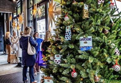 Wie Het Warenhuis binnenloopt, kan niet om de opvallende kerstboom heen: deze hangt vol met allerlei items met afbeeldingen van – hoe kan het ook anders – Bossche bollen. Van sokken tot onderbroeken en kerstballen. Dat we ons in Den Bosch bevinden, is bij deze duidelijk. We treffen er eigenaar Peter Merks. Hij opende met zijn vrouw in 1996 eet- en borrelcafé Jeronimus en wilde er graag nog een zaak bij om zo een bredere doelgroep te kunnen bedienen. De mogelijkheid deed zich voor toen het naastgelegen hoekpand vrijkwam.