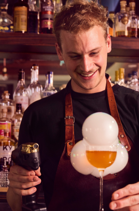 “Mijn doel was om door Europa te gaan trekken, maar ik bleef hangen in Nederland. Ik had van mijn familie een cocktailcursus bij EBS gekregen en ik heb de course in Amsterdam gedaan. Daar tipten ze mij om met Julian Bayuni bij Vesper te gaan praten voor een baan. Twee weken later begon ik. Mijn collega’s wilden mij alles leren en daar ben ik ze erg dankbaar voor - hiervoor ben ik ook naar Europa gekomen.”