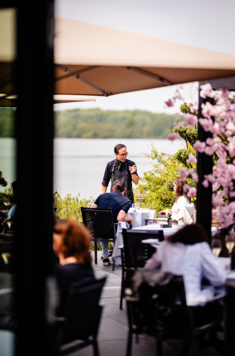 “Daarnaast hebben we zo’n vijftig wijnen per glas of in het arrangement. Zeker met de wijnbar erbij is wijn een van onze pijlers geworden.” Restaurant Aan de Poel** in Amstelveen doet er nog een schepje bovenop, zegt hoofdsommelier Marcel Ng: zeshonderd verschillende wijnen als basis, tot liefst achthonderd tijdens drukke periodes zoals kerst.