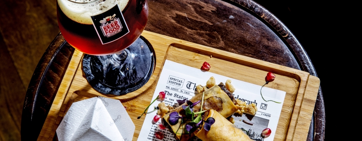 Het eerste bier dat mooi combineert, is Schumacher Alt 1838er. Wareman: “Dit bier geeft het rokerige en kruidige in deze borrelhap een ware boost. De zachte aromahoppen complementeren de fruitige tonen in het gerecht, afkomstig van onder andere de caramout.”