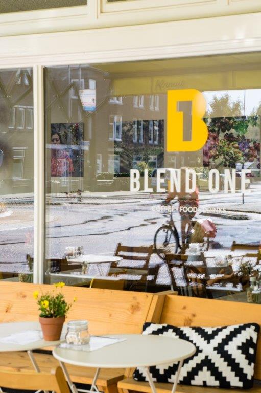 De naam staat voor meerdere dingen, verteld Kuiper. "Voor onze eigen specialty coffee blend. Daarnaast bestaat ons frisse interieur uit een blend van verschillende stijlen, met o.a. een grote muurschildering van een koffieplant, onze keuken is een blend van verschillende invloeden (mediteraan, Hollands, Frans, healthy en comfort food), de eet- en drinkmomenten ‘blenden’ in elkaar; van ontbijt tot lunch en borrel. Van verse juices en smoothies tot mooie wijnen, speciaal bieren en verfrissende cocktails. Dit alles met koffie als de rode draad in het gehele concept. En ook belangrijk: de blend van onze gezinsleden die gezamenlijk tot dit concept zijn gekomen. One staat dan weer voor huisnummer 1 aan de van de Wateringlaan in Voorburg en de eerste gezamenlijke zaak als gezin."