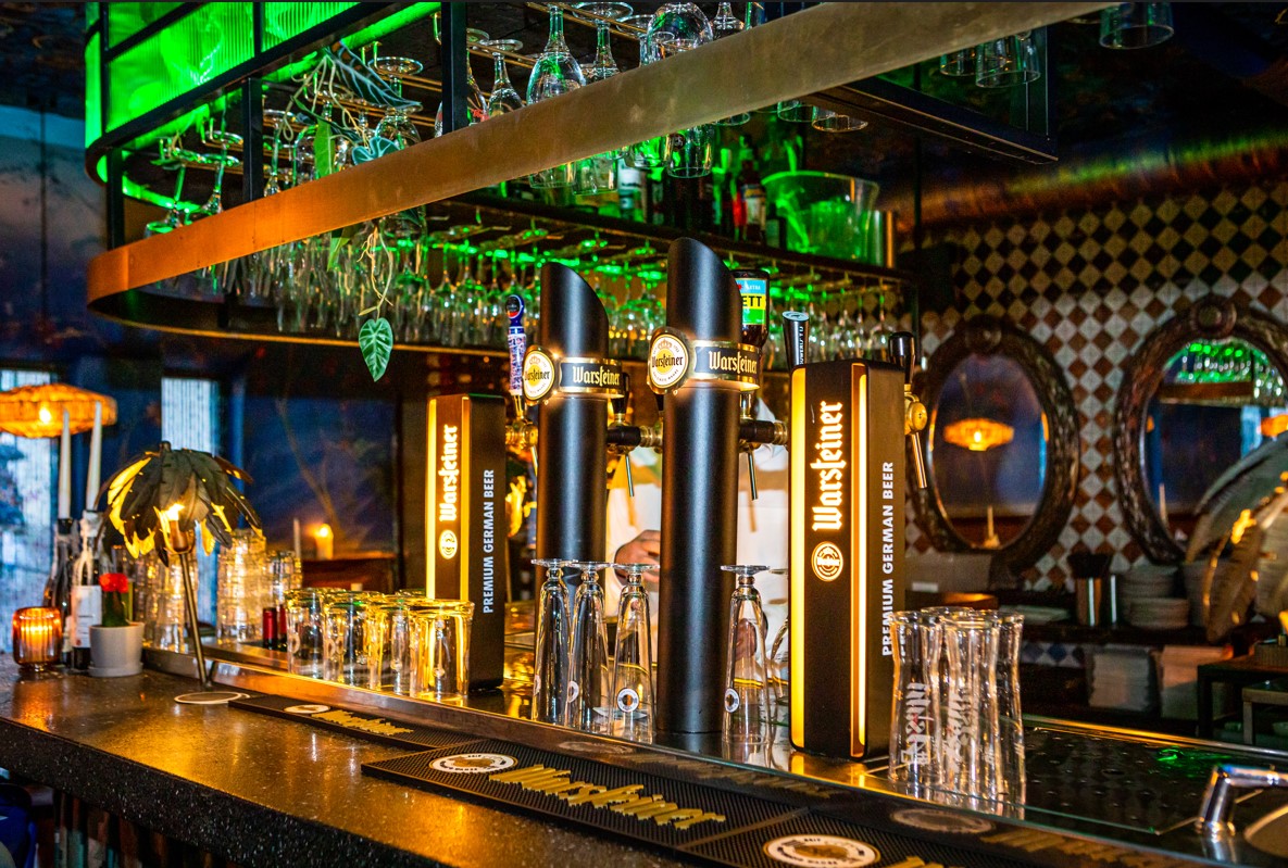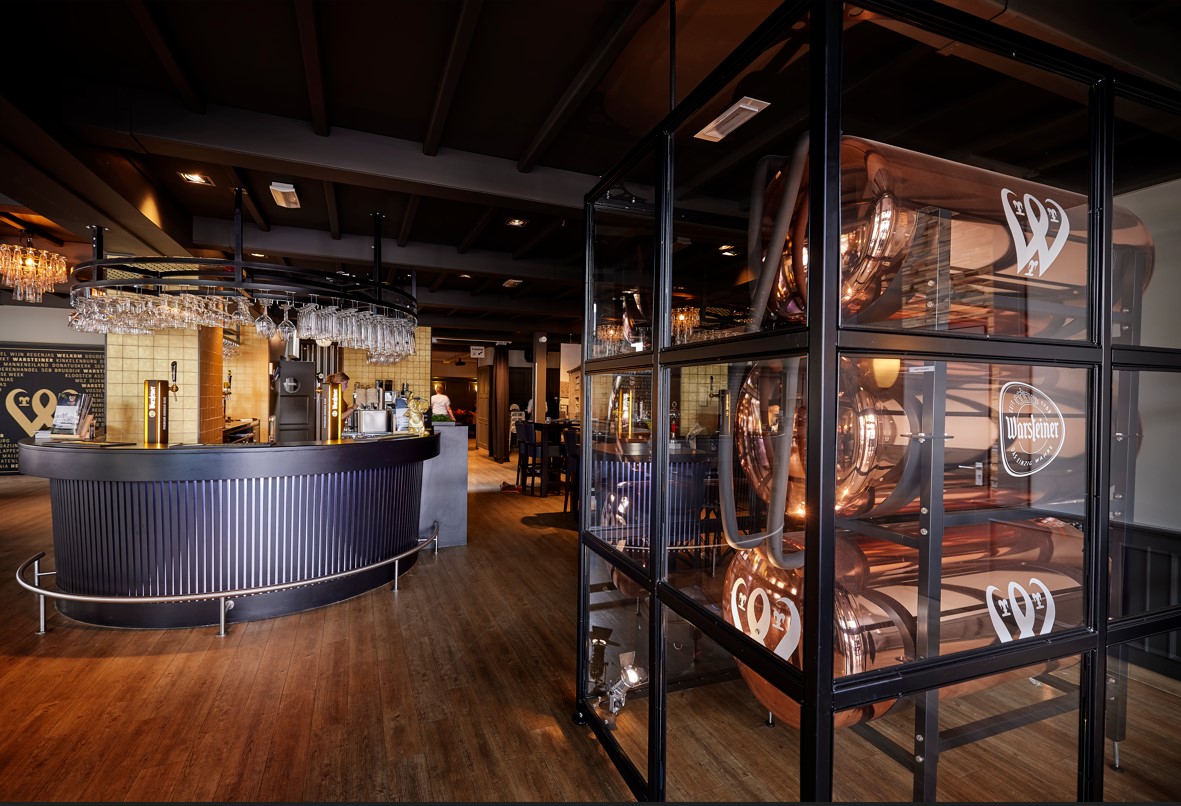 “Samen met een horecaondernemer kijken onze collega's, zowel vanuit het sales-team als onze brand activators, wat past bij hun horecaconcept. In iedere designstijl zul je in elk geval de kleurencombinatie goud-zwart-wit terugzien en mooie tapzuilen.” Maar er is meer binnen het “traditional-concept”, zoals Barten de eerste designstijl noemt. Bijvoorbeeld met eyecatchers als koperen biertanks, gouden muurtegels en een designobject voor aan de muur waar alle traditionele benodigdheden voor het serveren van de juiste Warsteiner samen een kunstwerk vormen: De POS wall."