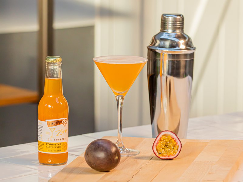 De alcoholvrije De Kuyper Zero Pornstar Martini cocktail combineert de smaak van passievrucht met zachte vanille plus een vleugje limoen. Schud eerst – eventueel met ijs om een schuimlaag te creëren – serveer dan voor de beste smaak, koud in een martiniglas en garneer met een halve passievrucht.
