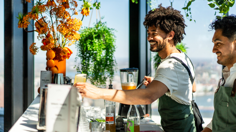 Na een uurtje of vier heeft elke deelnemer zijn verhaal en cocktail gepresenteerd en is het tijd voor het juryberaad. De tien bartenders drentelen zenuwachtig rond, snacks vinden gretig aftrek en de cocktails zijn inmiddels niet meer aan te slepen. In een sprookjesachtige setting op bijna tweehonderd meter hoogte, terwijl de zon langzaam richting de horizon zakt, volgt onder een luid gejoel het oordeel: Halil Yozgyur (Sonora), Luca Gislon (Fitz’s Bar) en Leroy Soumokil (Bar Hana Ichiba) plaatsen zich voor de finale, later dit jaar in Berlijn, waar ze meedoen om de titel World Class Netherlands Winner 2025 en daarmee een plek bemachtigen in de Global World Class Finals in Toronto, Canada.