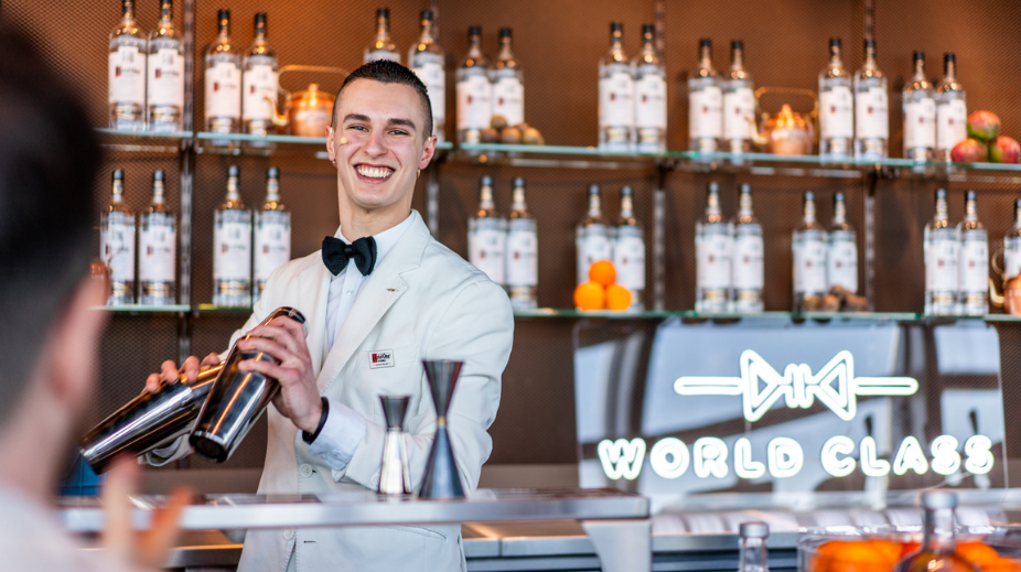 Op de 57ste verdieping van de Zalmhaventoren in Rotterdam is het uitzicht werkelijk adembenemend. Maar de ogen van de bezoekers van de World Class Semi-Finals in cocktailbar Celest zijn deze maandagmiddag vooral gericht op de bar, waar tien van de beste bartenders van Nederlandse cocktailbars strijden om een plek in de finale. Mixologist, bartender en ondernemer Andew Nicholls praat vanachter de bar de hele middag aan elkaar. Hij stond zelf veelvuldig in de finale van internationale bartenderwedstrijden en weet hoe de deelnemers zich voelen.
