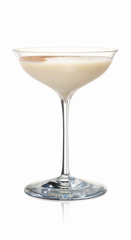 Shake alle ingrediënten met ijs, schenk uit en fine strain in een Nick & Nora-glas gevuld met een groot ijsblok. Garneer met versgeraspte nootmuskaat.