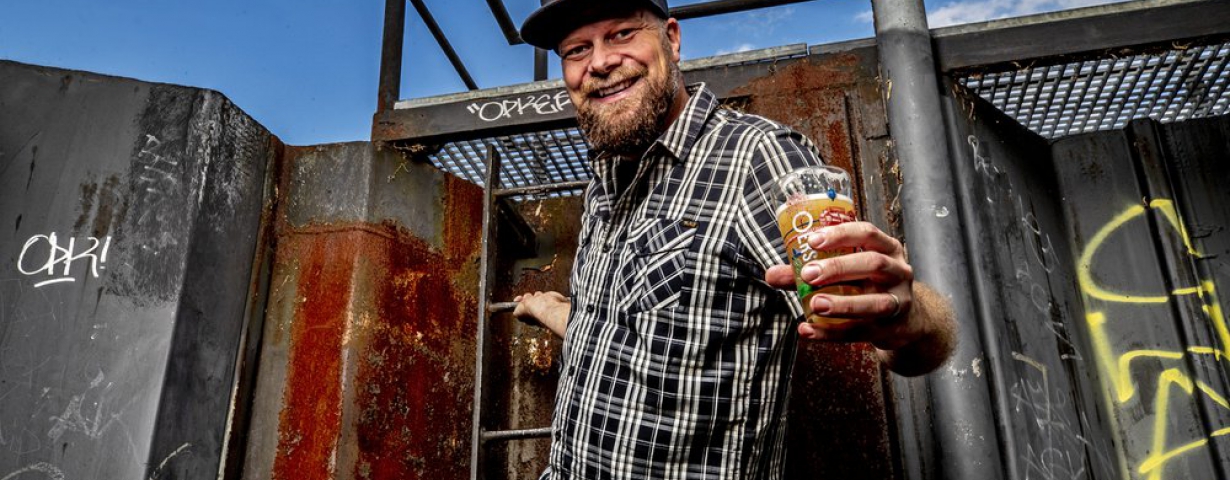 We ontmoeten Ferry bij Nevel Wild Ales , de foto’s zijn gemaakt bij de buren STOOM in Nijmegen, het proeflokaal van brouwerij Oersoep. Ferry Wijnhoven (42), getrouwd met Dayenne en vader van twee, houdt zich al 15 jaar bezig met biotechologie. Hij werkt bij Genetwister Technologies, waar hij DNA van gewassen in kaart brengt voor veredeling en verbetering. En nee, daar zijn geen hopplanten bij. Zijn band met (speciaal)bier, begon, zoals bij velen, in de studententijd. In het Arnhemse café ’t Moortgat proefde Wijnhoven zijn eerste Belgische bieren. Later zag hij op de tv Tournée Générale, dat schitterende Vlaamse programma over de Belgische bieren, waardoor hij zijn kennis wilde gaan verdiepen. Een goede Arnhemse slijterij was in die tijd een belangrijke plek voor hem. Met de opkomst van Facebook kreeg hij de mogelijkheid zijn bierervaringen te delen, wat hij hartstochtelijk deed.