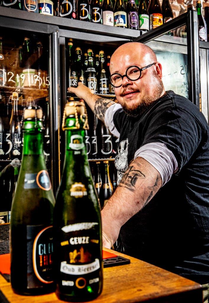 ‘Gastvrijheid is voor mij altijd het beginpunt, bier een middel.’ Maar Hegge heeft 22 jaar horeca-ervaring en kan als zoon van Vlaamse caféhouders aan bieren komen die geen ander heeft. Hij is liefhebber van twee klassieke Belgische bierstijlen, de geuze en de saison. De collectie, opgesteld in een wandkast, is om van te watertanden. Dan ook nog eens 42 tapkranen met alle mogelijke bierstijlen. Niet alleen craft. ‘Gastvrijheid staat op een, dus je moet je gasten ook bieren van grote brouwers aanbieden.’