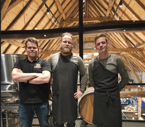Jeroen Verbrugge, chef Mike Honig en souschef Mike Cox in de brouwerij.