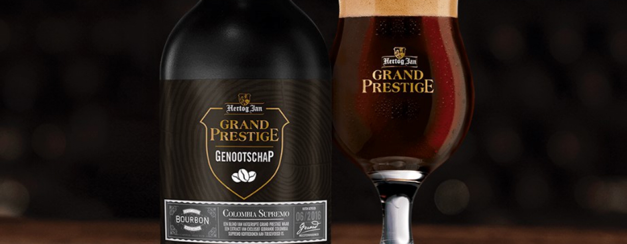 Meesterbrouwer Gerard van den Broek heeft de complementaire smaken uit verschillende houten vaten samengebracht. “Grand Prestige Genootschap heeft ruim 18 maanden gelagerd in Kentucky Bourbon vaten. Na de lagering hebben we ook gekneusde Colombia Supremo koffiebonen toegevoegd. Dit maakt dit vatgerijpte bier extra bijzonder.” Aldus de meesterbrouwer. Het resultaat is een unieke blend waarin smaken van koffie, karamel, chocolade, vanille, kokos en verfijnde moutbitterheden in te herkennen zijn.