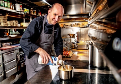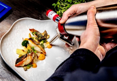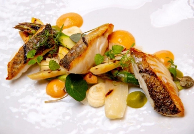 Slezak werkte mee aan het ontwikkelproces van de vernieuwde kookroom. Hij testte hem in de praktijk en heeft de oude en de nieuwe naast elkaar kunnen proeven. Nu maakt hij er, naast romige soepen, met name sauzen mee. Zoals de schuimsaus van kreeftenbisque, die hij serveert bij zijn gegrilde witte en groene asperges met schelvis, cashewnoten en doperwtencrème (zie foto). Voor de schuimsaus laat hij kreeftenbisque tot de helft inkoken, dan gaat er kookroom bij, die hij nogmaals tot de helft laat reduceren. Vervolgens gaat de saus de kidde in. Slezak: “Deze bereidingswijze levert meer rendement op, maar is ook praktisch want de saus staat al klaar in de sifon en de kwaliteit blijft top.”