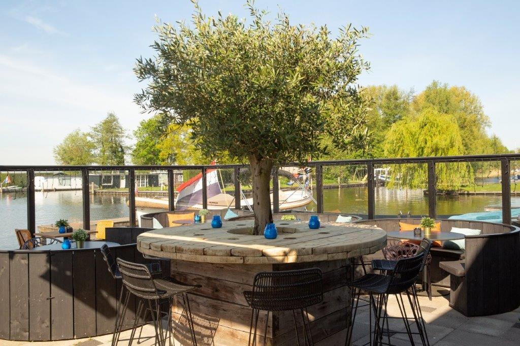 Het hele pand is op water gericht. In het restaurant is een soort ‘binnenwater gevoeld’ gecreëerd door prints met zwanen te gebruiken. Gasten in het restaurant kijken door de grote ramen uit over het water en door het glazen plafon zijn de takellijnen te zien waar vroeger boten aan werden opgehangen.