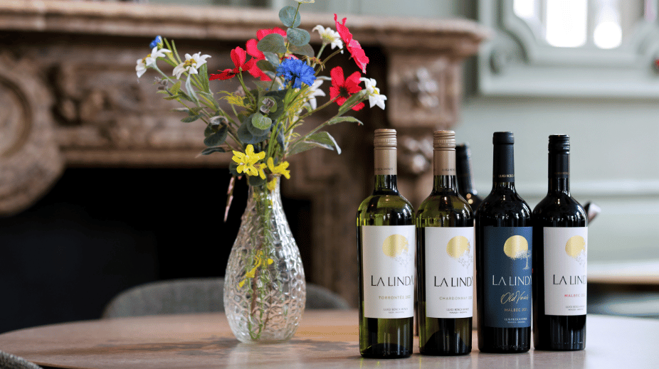 In de omgeving van de Argentijnse stad Mendoza ligt de basis van de wijnen. De naam van La Linda is geïnspireerd op de schoonheid van de lokale landschappen, legt Pina tijdens de viergangenlunch uit aan het selecte gezelschap genodigden. De wijngaarden liggen op ongeveer een kilometer hoogte boven zeeniveau en worden omgeven door het Andes-gebergte, wat volgens haar een ideale setting is voor het maken van fruitige wijnen die het karakter van de druivensoorten uitstralen in aroma’s en smaken.