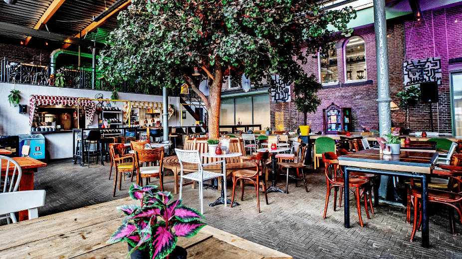 Pas op, noem het hier geen jeu-debouleshal! Dat doet geen recht aan de unieke locatie in de Haarlemse Waardepolder. Een liefdevol gerestaureerd pand, sfeervol ingericht rond een betegeld Frans dorpsplein, compleet met boom in het midden en een houten bankje eromheen.