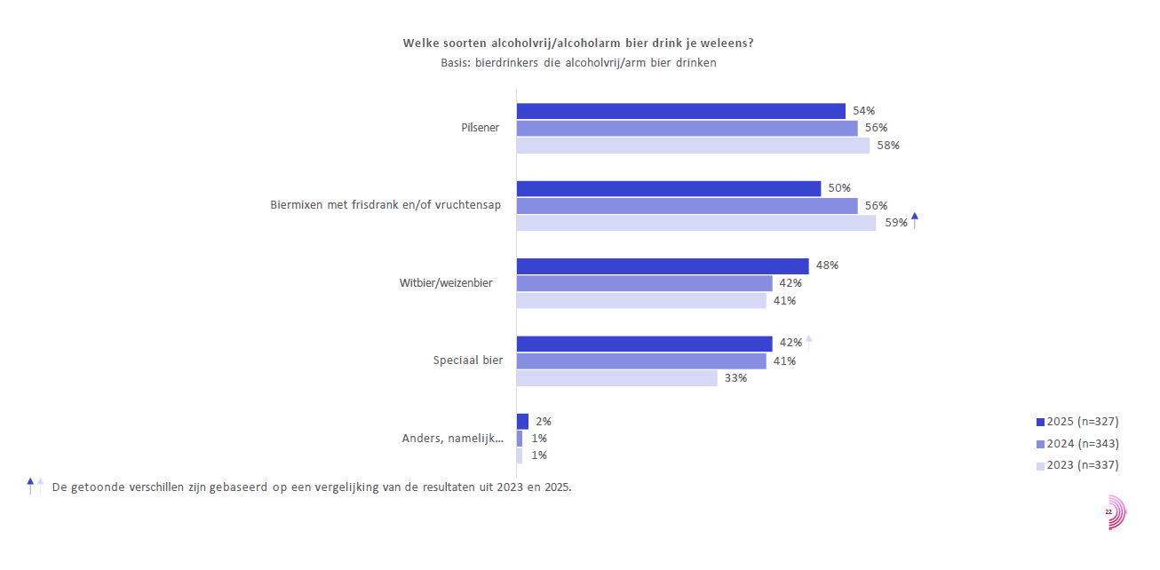Uit het onderzoek blijkt dat bijna de helft van de drinkers de afgelopen twee jaar vaker alcoholvrij is gaan drinken, mede doordat ook witbier, weizen en andere biertypen in alcoholvrije variant beschikbaar zijn. Dat aanbod was vijf jaar geleden nauwelijks denkbaar. Consumenten noemen met name “betere smaak” en “meer keuze” als redenen om vaker voor alcoholvrij te kiezen.