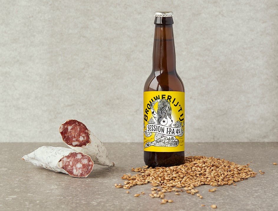 De droge worst is gemaakt van goed gehouden varken en ontwikkeld door Jiri Brandt en hoofdbrouwer Tjalling Landman. Zij kozen ervoor de Session IPA te gebruiken in de worst. De hoppige bitters en citrustonen van het bier worden benadrukt door de gerookte mout. ‘Een natje en een droogje’ ineen.