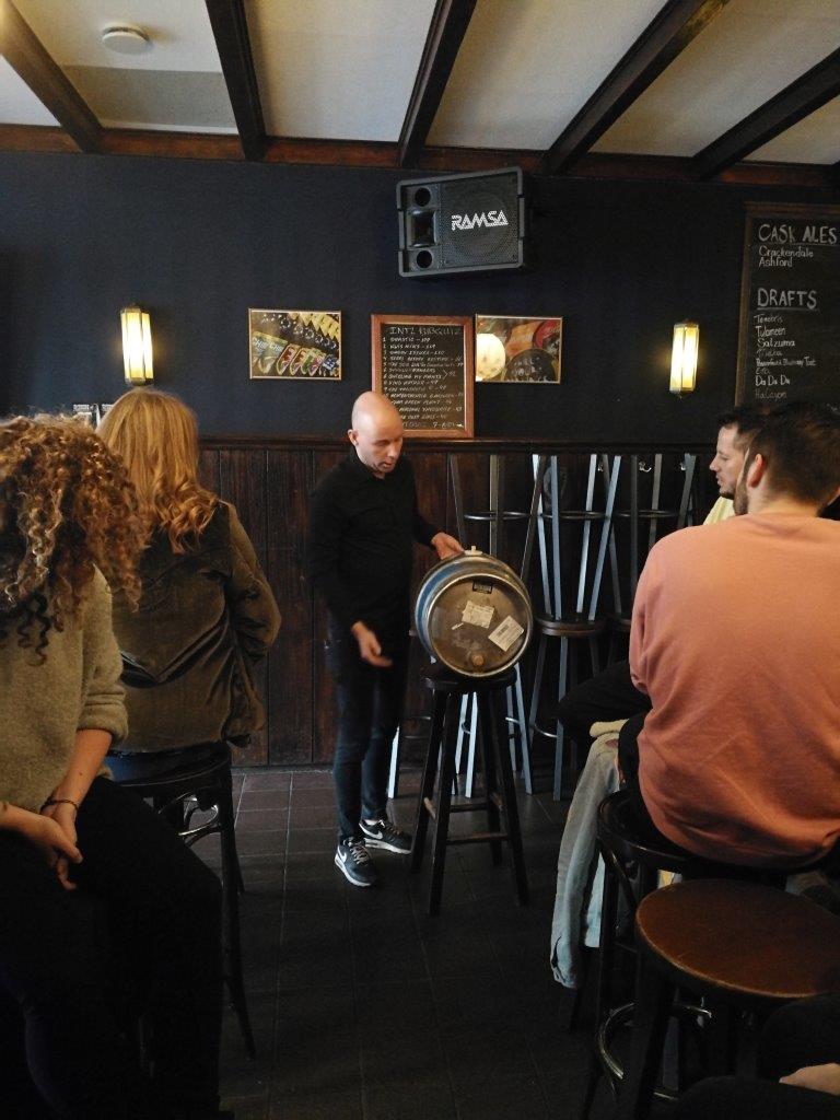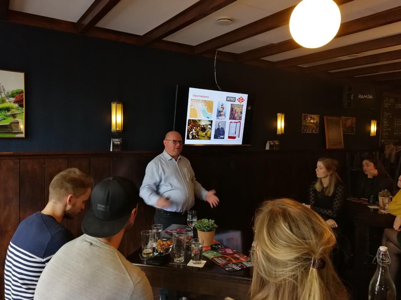 Die mooie locatie was een prettige plek om Bier 101 te houden. Zoals altijd was Rick Kempen de kundige en bevlogen docent. De cursisten bleken zeer geïnteresseerd en er werden dan ook veel vragen gesteld. Paul Leeyen gaf als extraatje nog een uitgebreide demonstratie biertappen.